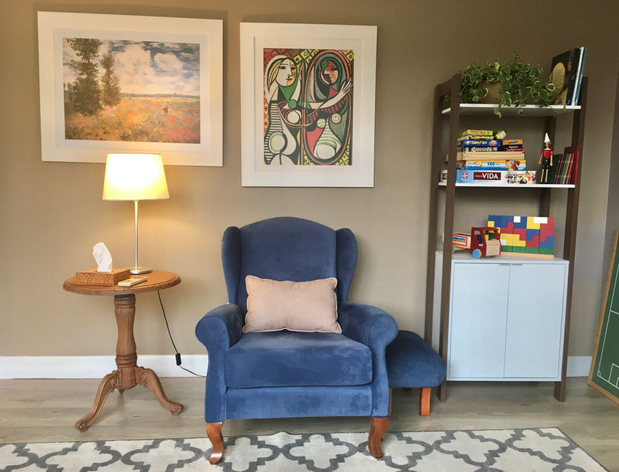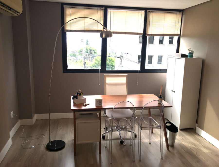 O consultório é um ambiente aconchegante e confortável para os pacientes, apropriado para as sessões. Está localizado na Av. Carlos Gomes, 1610/208, no bairro Três Figueiras em Porto Alegre, Rio Grande do Sul.